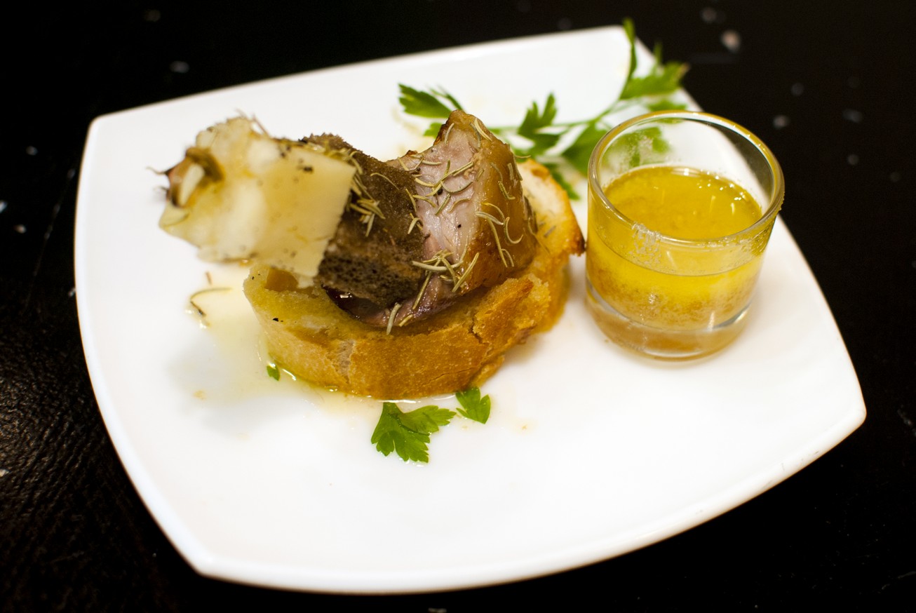 Pero también El Carmelo, ‘Pincho de ternasco asado crujiente’; La Cava, ‘Chupa chups de ternasco de Aragón’; El Cierzo, ‘Empanadilla de ternasco’; Casa Nogara, ‘Canelón de ternasco con alcachofa con reducción de PX’; Antiguo La Jota, ‘Risotto de ternasco de Aragón y hongo en pan de pita’; El Camparol, ‘Flor de yema de ternasco’; o Mi Secreto, ‘Cubito de parmentier de borraja con ternasco confitado del Bajo Aragón’.
