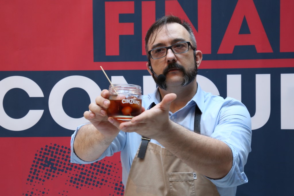 «Estoy muy contento por haber ganado. Hace muy poco que abrimos para nosotros es un impulso muy fuerte», ha asegurado Denis Lopez, ganador de la primera ‘Ruta del Vermut preparado Cinzano’ durante la gran final.