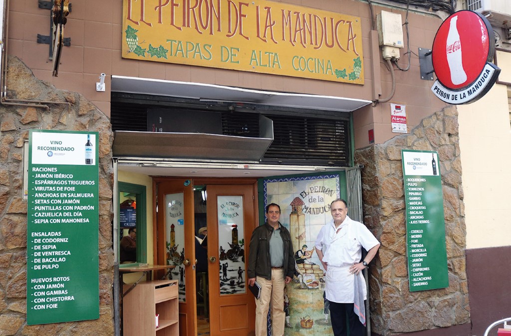 Casi al final de la calle Bruno Solano llegamos al Peirón de la Manduca, que lleva 22 años instalado en esa misma calle. “Somos uno de los bares más antiguos de la zona”, afirma orgulloso Abilio, dueño del establecimiento. Las raciones de puntillitas, ajos tiernos, jamón Ibérico, los peirones de solomillo o manducos de bacalao, tapa ganadora del Concurso de Tapas en el año 1997, son algunos de los platos que le han hecho destacar sobre los demás.
