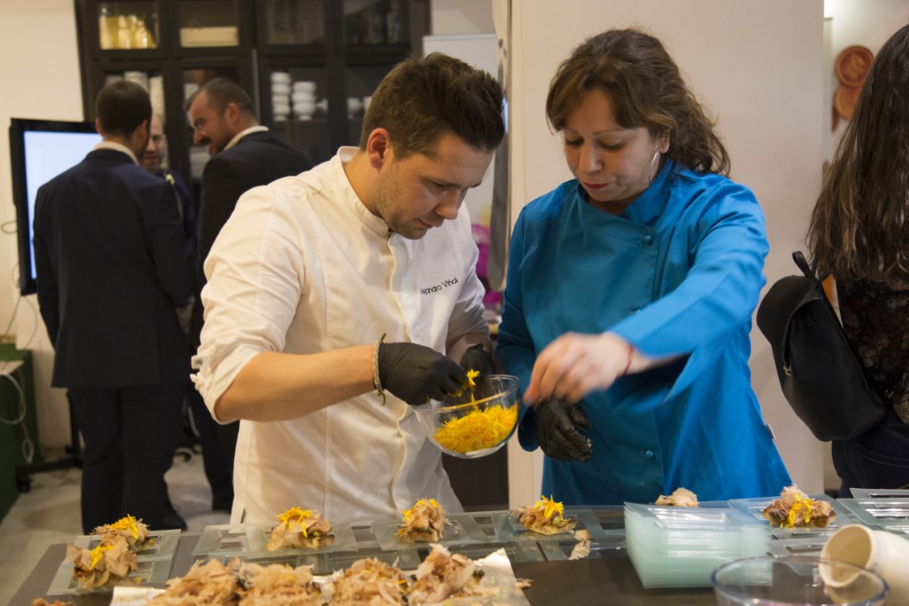 Los cocineros que han representado a la gastronomía de la provincia de Zaragoza han sido Alejandro Viñal de Bar Darlalata que ha elaborado su ‘Bonito Estacional’, la mejor tapa de 2017, acompañado por la propietaria del establecimiento, Ana Isaura. Susana Casanova, en nombre de La Clandestina, ha presentado su ‘Shushi máñó’, premiada en 2017 como la Mejor Tapa Original. Asimismo, David Fernández, de El Gratal de Ejea de los Caballeros ha elaborado la tapa ‘T-M-T unos huevos’, premiada como Mejor Tapa Aragonesa. El cocinero Luis Vicente de El Escondite ha cocinado ¡¡¡Hoy cocido!!! premiada como Mejor Tapa Tradicional y Blanca Rodriguez del Restaurante Rodi ha presentado la Mejor Tapa apta para celíacos de 2017, Ossobuco de Ariza.