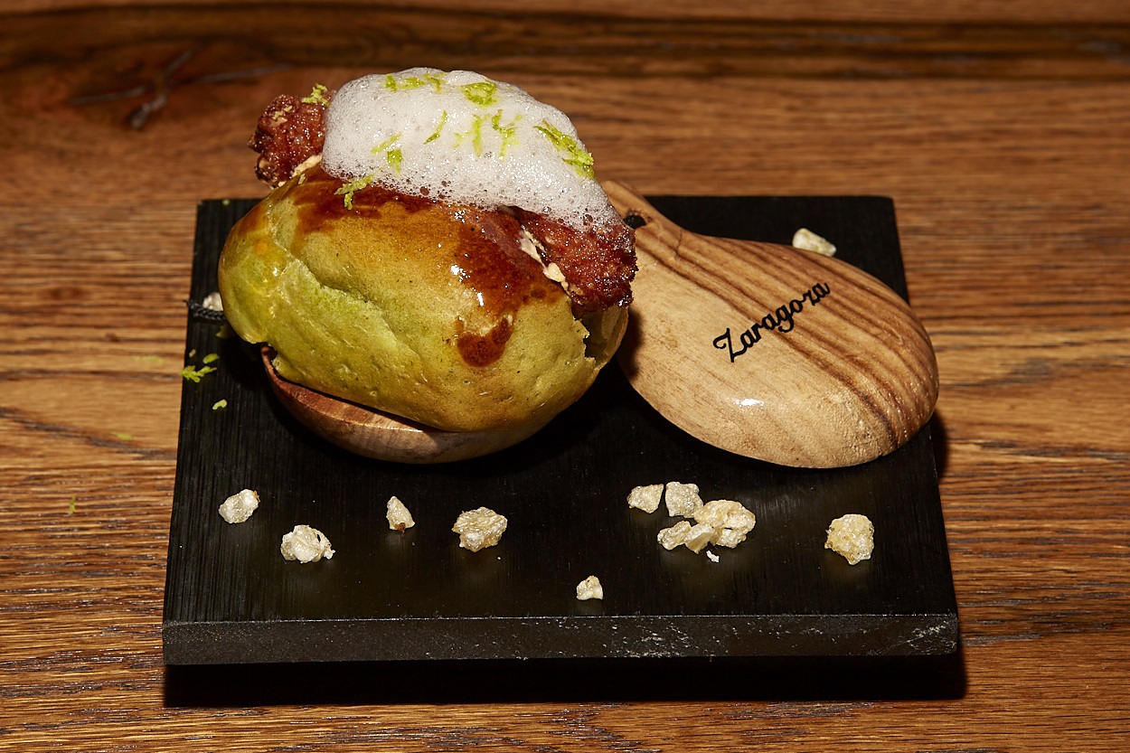 Brasserie Fire ha logrado el premio a la Mejor Tapa de Zaragoza y Provincia con su “Corona de los Valles”, una tapa elaborada con; esfera de suspiro de monja, relleno de guiso de ternasco de Aragón IGP al vino tinto de la D.O.P. Somontano, coronada con falso rubí esferificado de frutos rojos, marinados con chile chipotle caramelizado y cilantro encurtido, que ha conquistado al jurado de la XXIX Edición del Certamen Oficial más antiguo de España. El segundo premio ha sido para La Cava con su tapa “Co-curucho”, cucurucho de borraja relleno con cuello de ternasco de Aragón IGP, chutney de melocotón de Calanda DOP y toping de jamón de Teruel DOP; mientras que el tercer premio se lo ha llevado Ambigu El Foro, con “Cono de Ternasco de Aragón I.G.P.», cono con patata trufada, boletus y rostea de Ternasco de Aragón IGP.