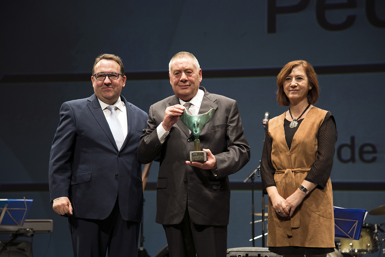 El presidente Pedro Giménez recibe el premio ‘Hostelería y Turismo’ por sus años de trabajo en la Asociación de Cafés y Bares de Zaragoza y Provincia.