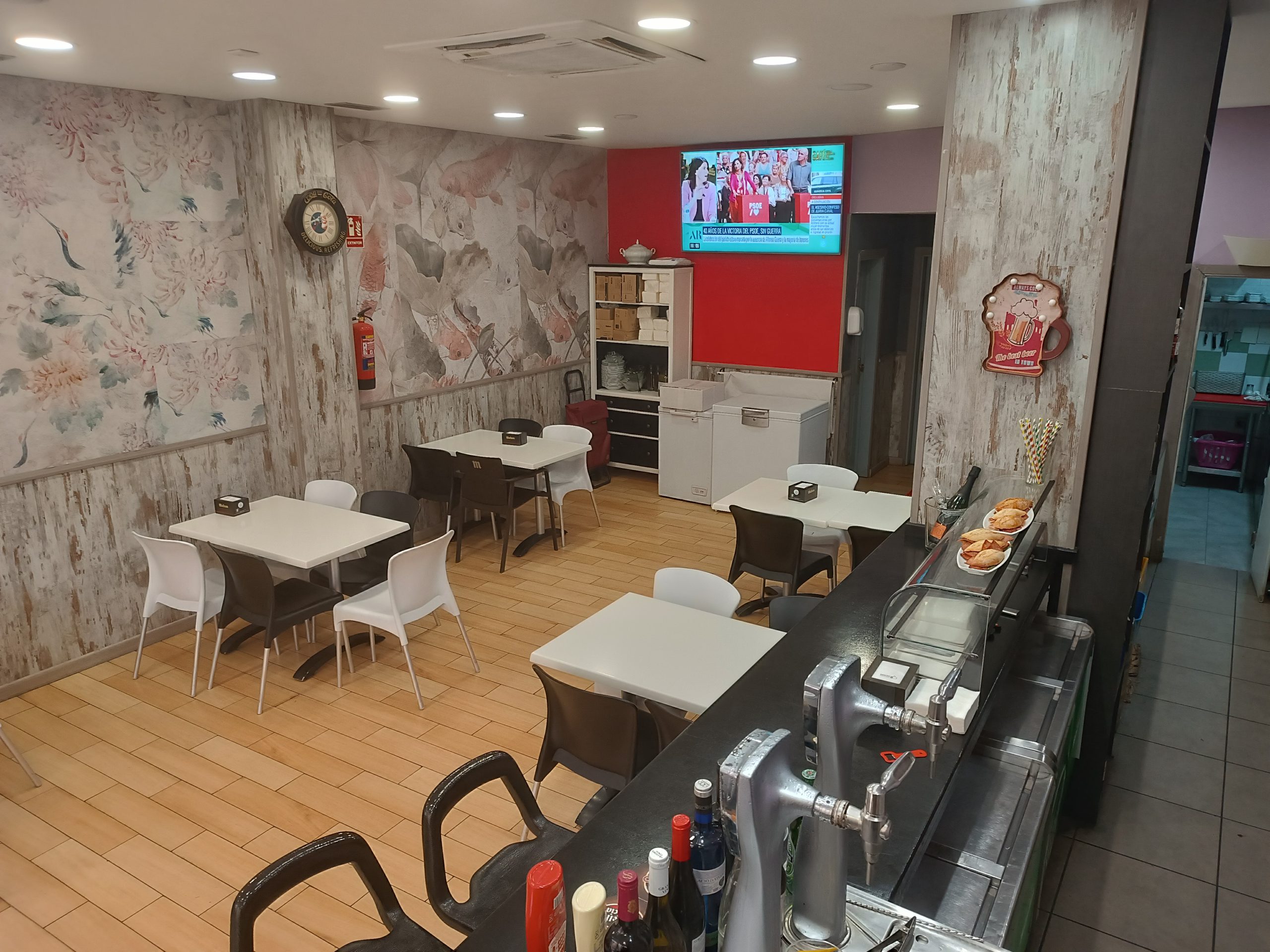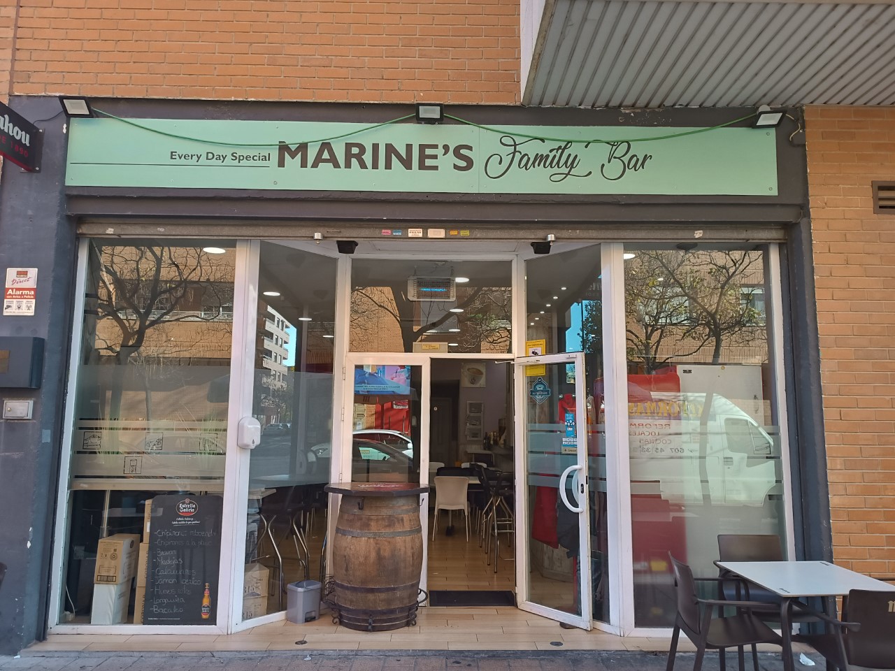 Se traspasa el bar- cafetería Marine’s por motivo de jubilación. La cafetería está bien situada en calle Fuendejalón, 3, junto al colegio Marie Curie, una zona residencial y en crecimiento. Se encuentra totalmente equipada, cocina con nevera y dos arcones, salida de humo y licencia definitiva. Además, cuenta con mobiliario y toda la maquinaria. El local es muy luminoso, dispone de dos cuartos de baño completos, aire acondicionado y sistema de calefacción. También dispone de tres televisores y un sistema de videovigilancia recién instalado. La terraza tiene la licencia de 8 mesas y es una zona muy fresca para el verano, ya que el sol entra muy tarde. Existe la posibilidad de verlo en cualquier momento.